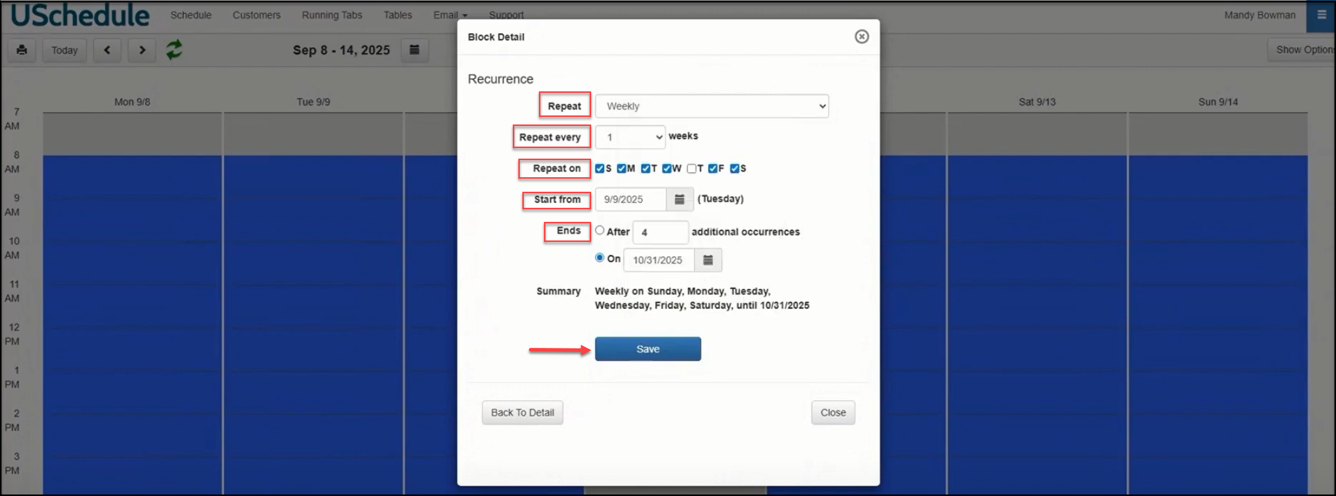 How to Set a Recurring Block in the Schedule