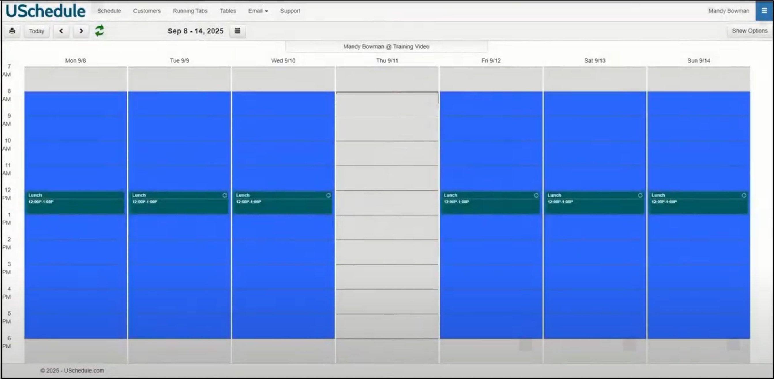 Save the parameters and your lunch breaks are set, excluding Thursday where you are not available for lessons.