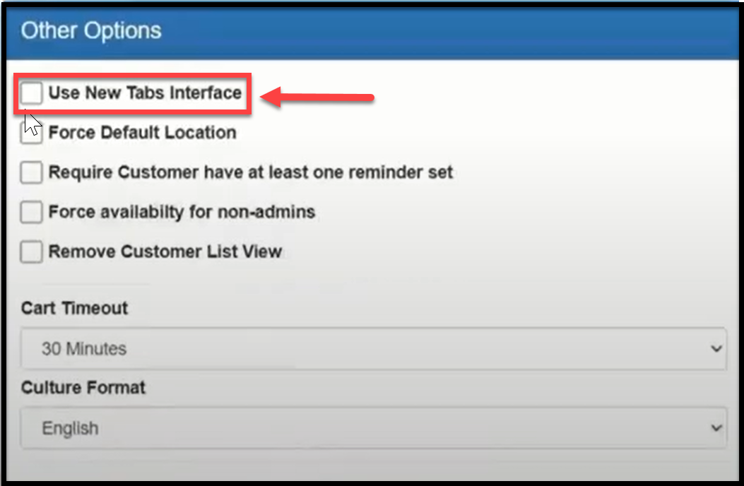 Scroll down the page to the Other Options panel and click the checkbox to Use New Tabs Interface.