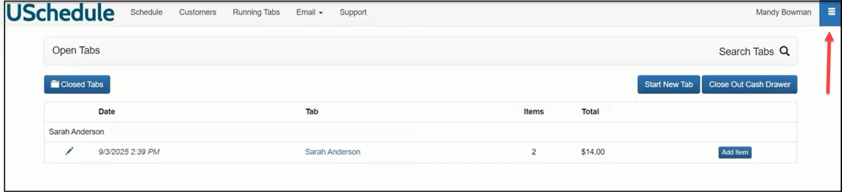 To switch from Legacy Tabs POS to Enhanced Tabs, go to your Navigation menu and click on Settings.
