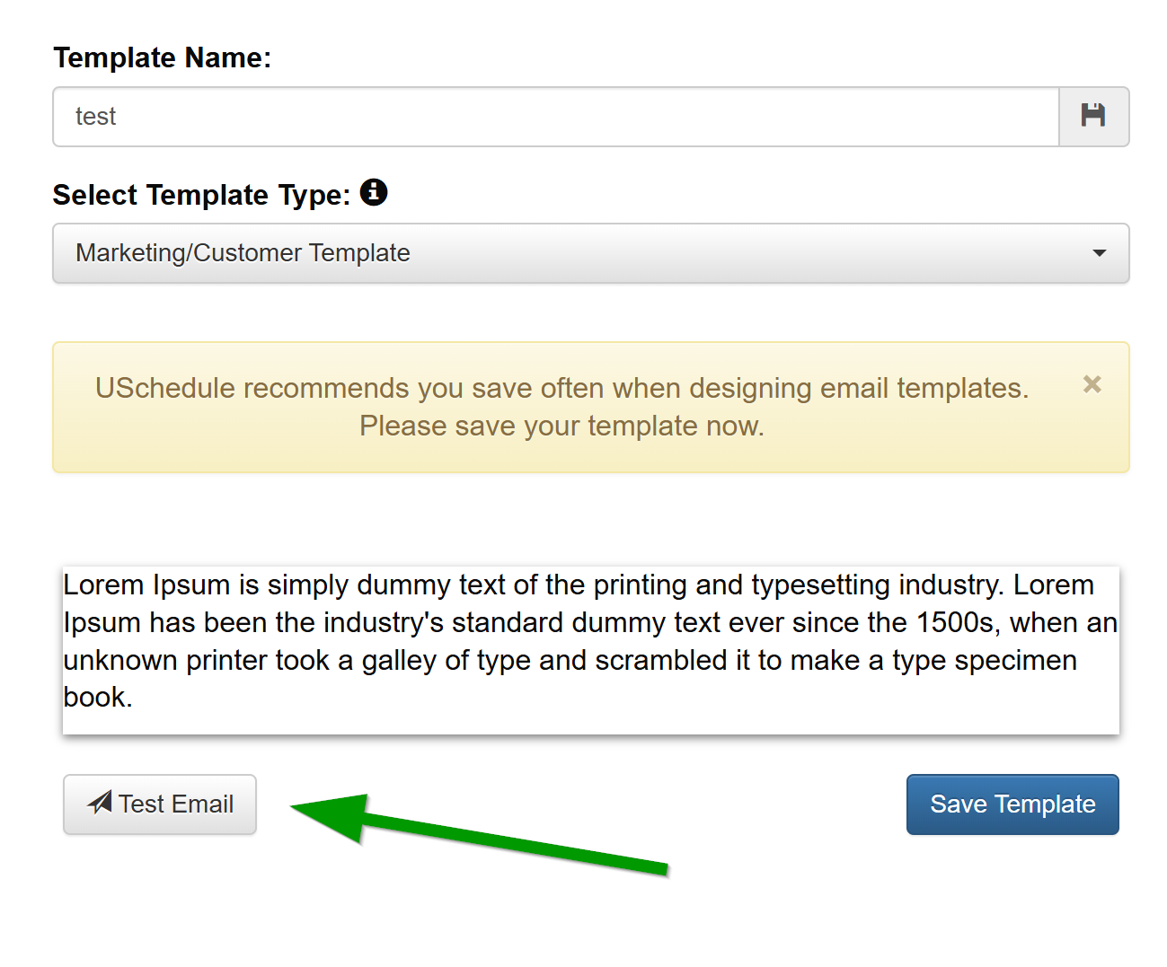 Before you send out your email to your entire list, test it thoroughly. USchedule’s email builder includes a “Test Email” feature (as shown in the screenshot above) for this exact purpose. Here’s what to do before you hit “Send”: