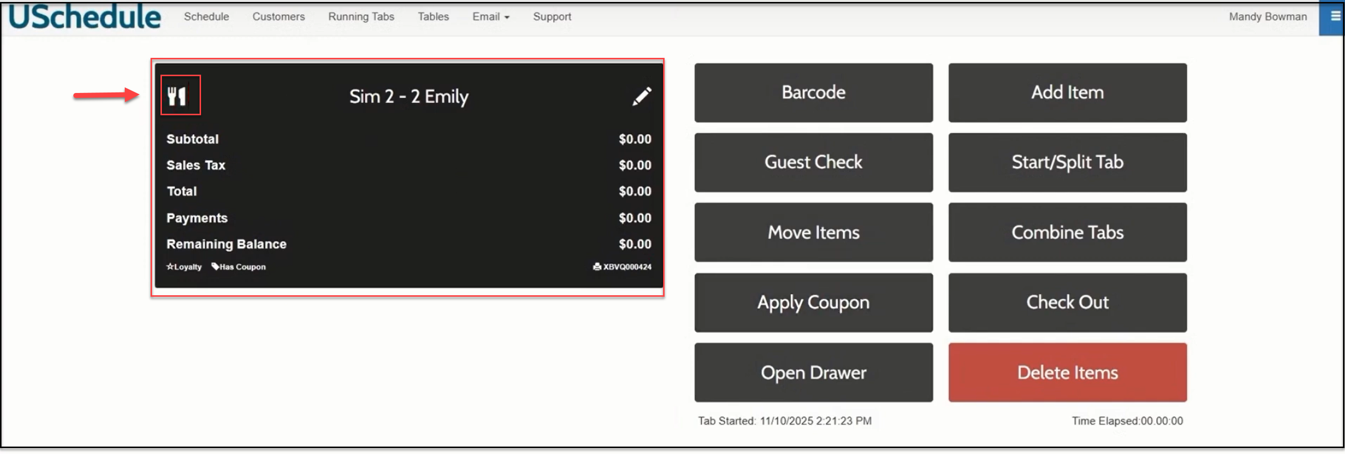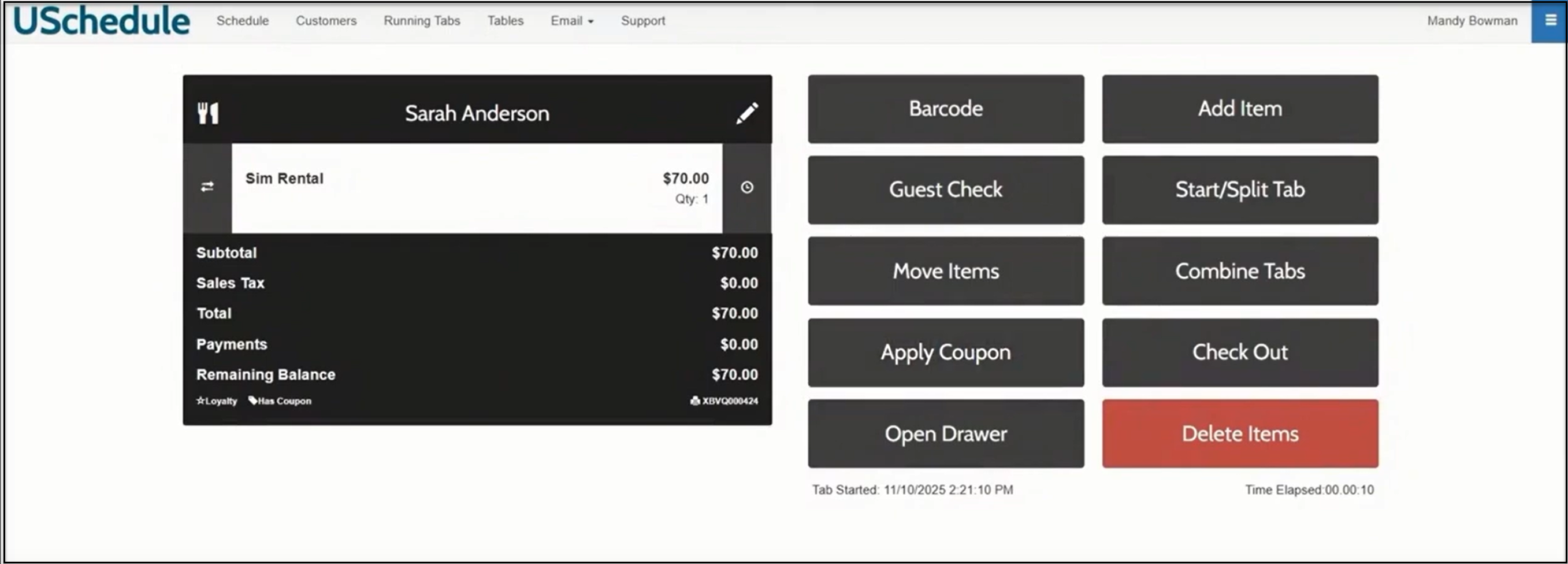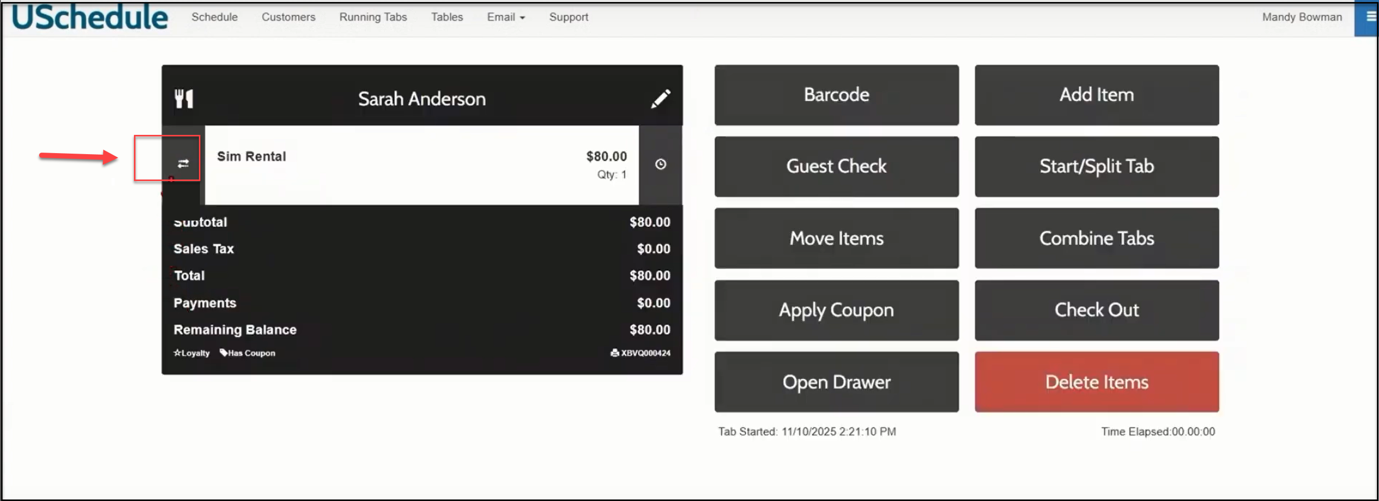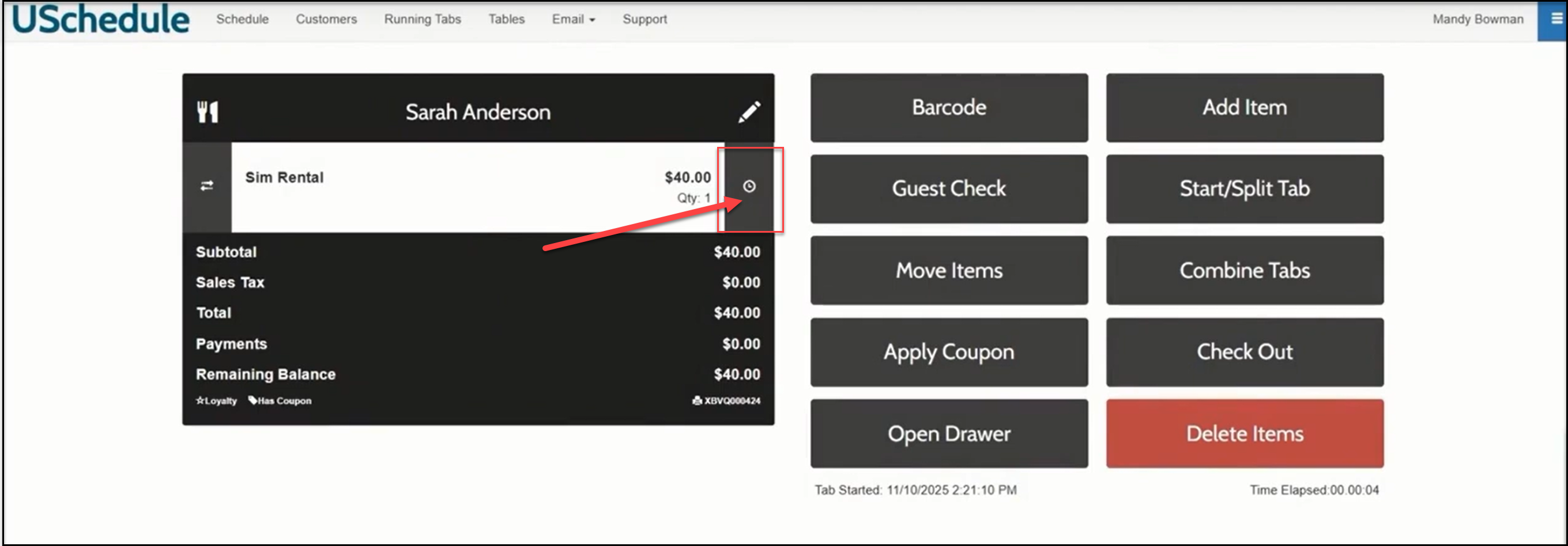 To apply a coupon to this tab, click the item that you would like to apply the coupon to and click the Apply Coupon button:
