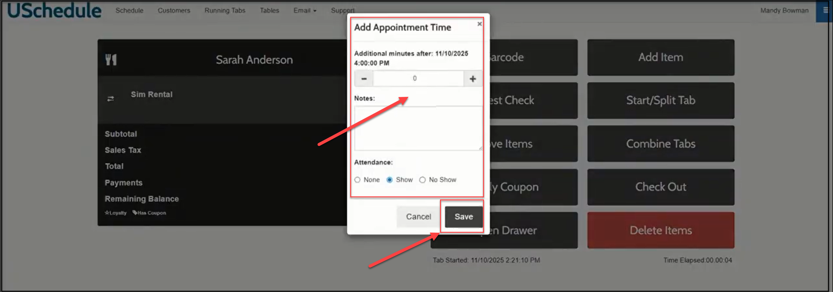 How to Split a Tab for an Appointment and Extend Simulator Time
