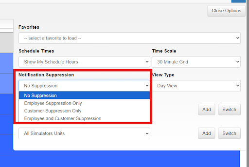 How to Use Notification Suppression in the Show Options Menu of the Schedule