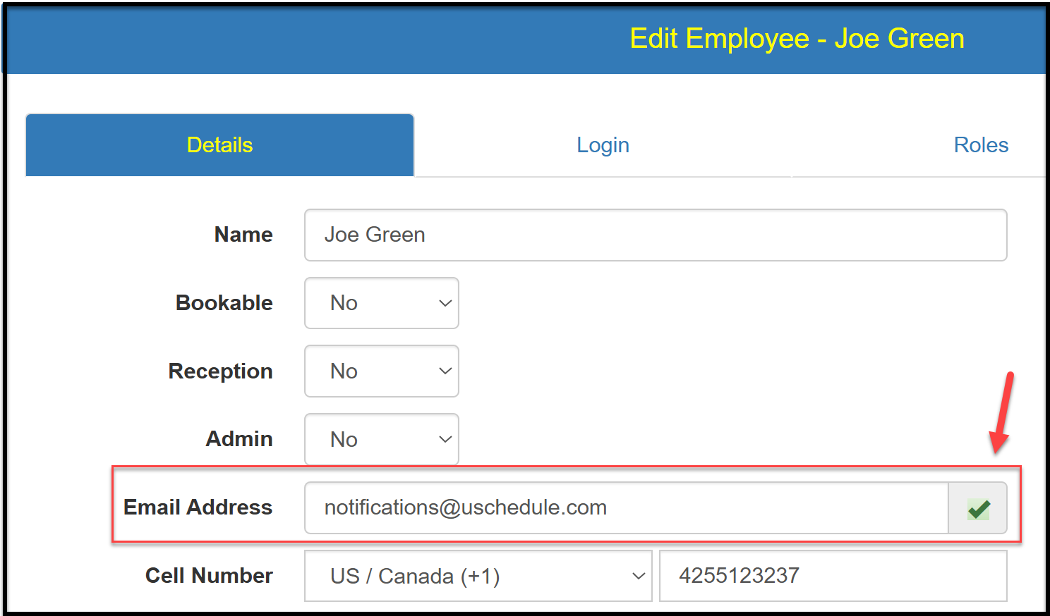Make sure there is a green checkmark next to the email address.